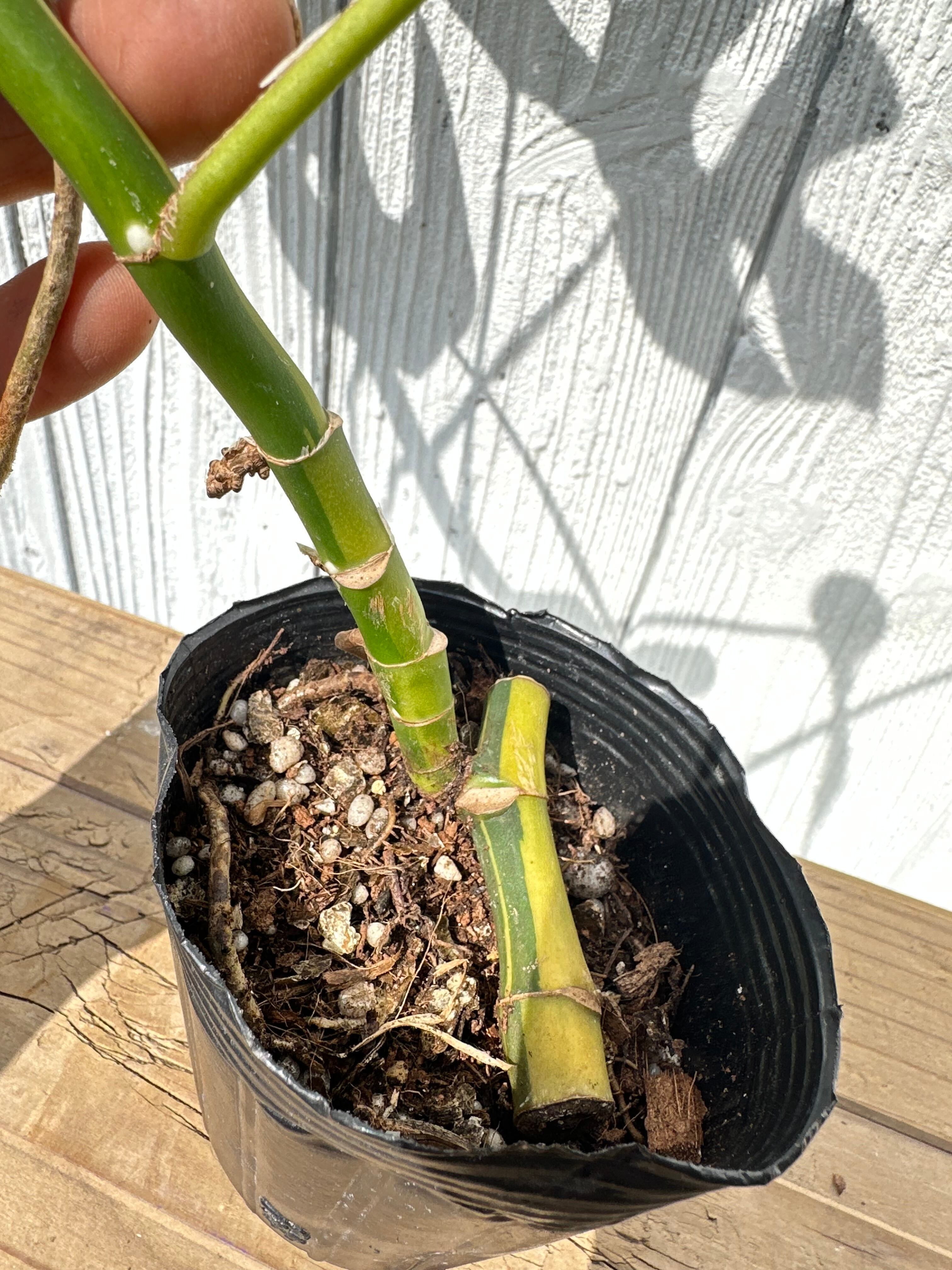 斑入り葉がすくないながら茎には黄色い斑入りが見られるので土や環境が変われば面白い葉がでてくるかもしれません。ぜひお試しください♪